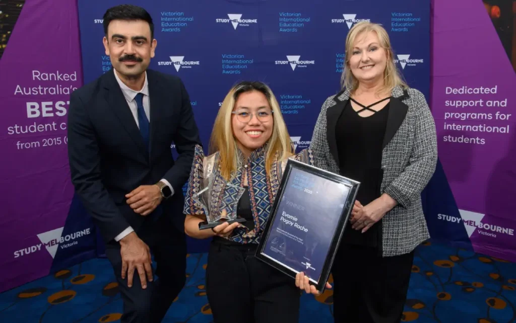 Out of 330,000 entrants across 6 categories, our student, Eva Roche, won First place for the Vocational Education for International Students category. Eva’s background story, her current studies for Advanced Diploma of Civil Construction Design, and active paid work in the industry plus volunteer work recognised her efforts out of thousands. Her volunteer work in her community and the Civil Construction Design industry will see her achieve great goals. We congratulate Eva Roche as an inspiring leader.